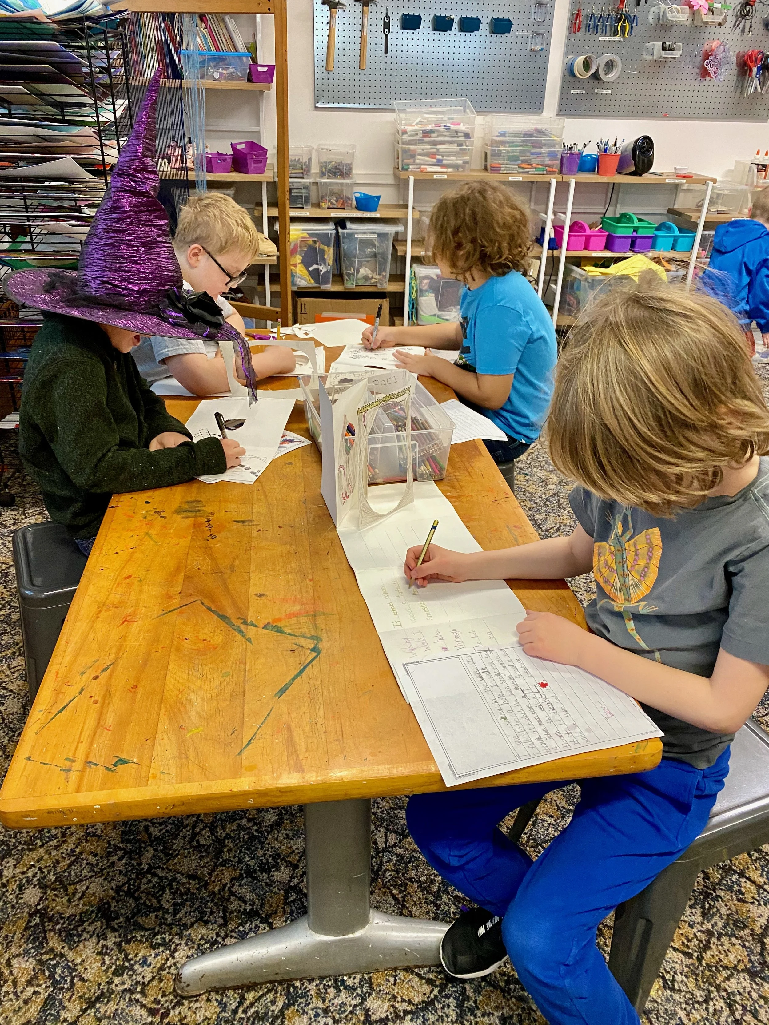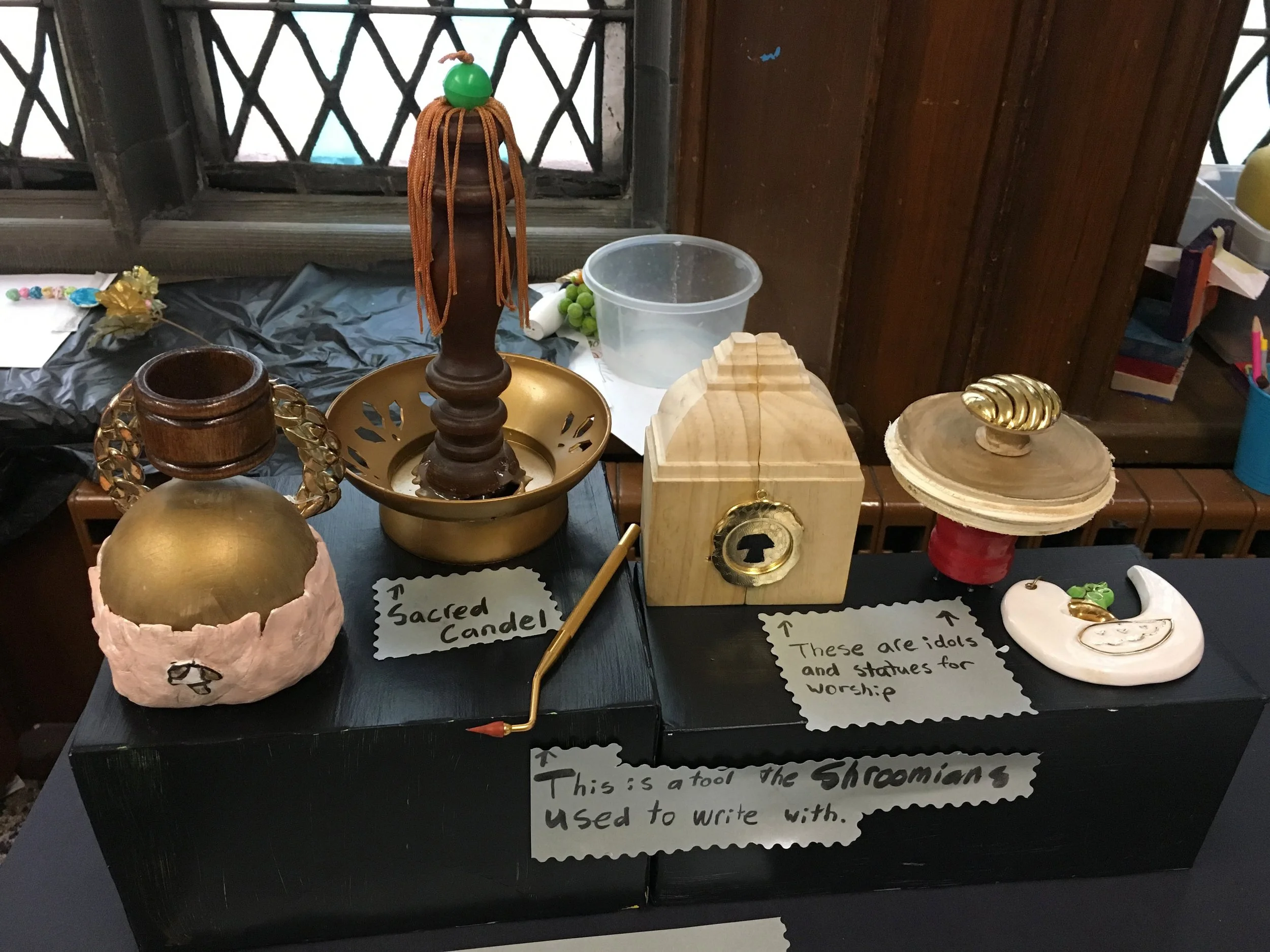 Students in grades 2 - 5 used recycled materials to create “artifacts” from imaginary ancient cultures. For inspiration, we looked at ancient artifacts from around the world, and how they are curated and displayed in museums. Student created stories and other writing about their imaginary societies, as well as maps and illustrations of the beings who lived there.