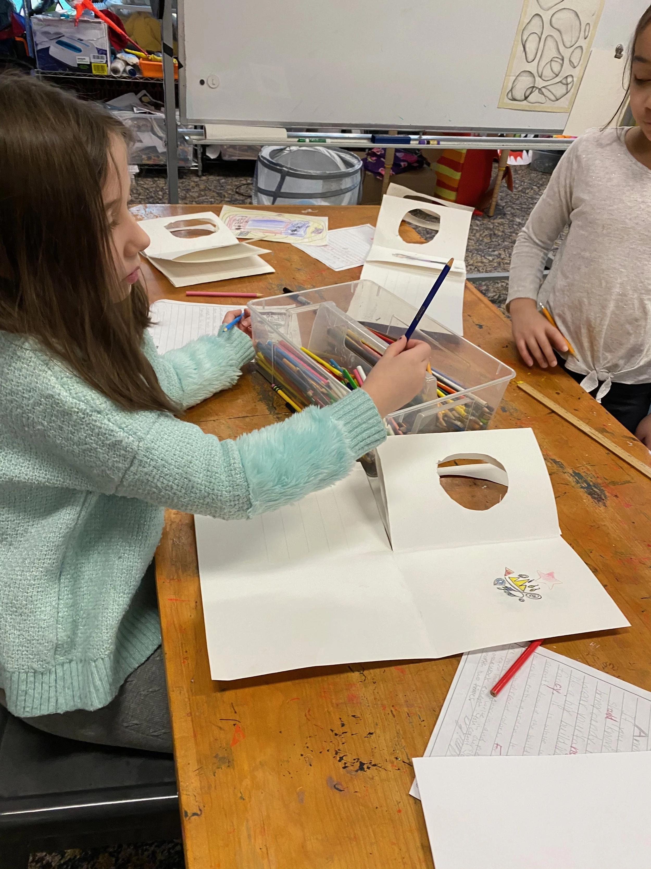 KAS second Graders had the opportunity to learn about and create poetry with local Pittsburgh poet Michelle Gil-Montero. After writing and revising their work they created a tunnel book for their work, writing out their poem and creating imagery to go along with it.