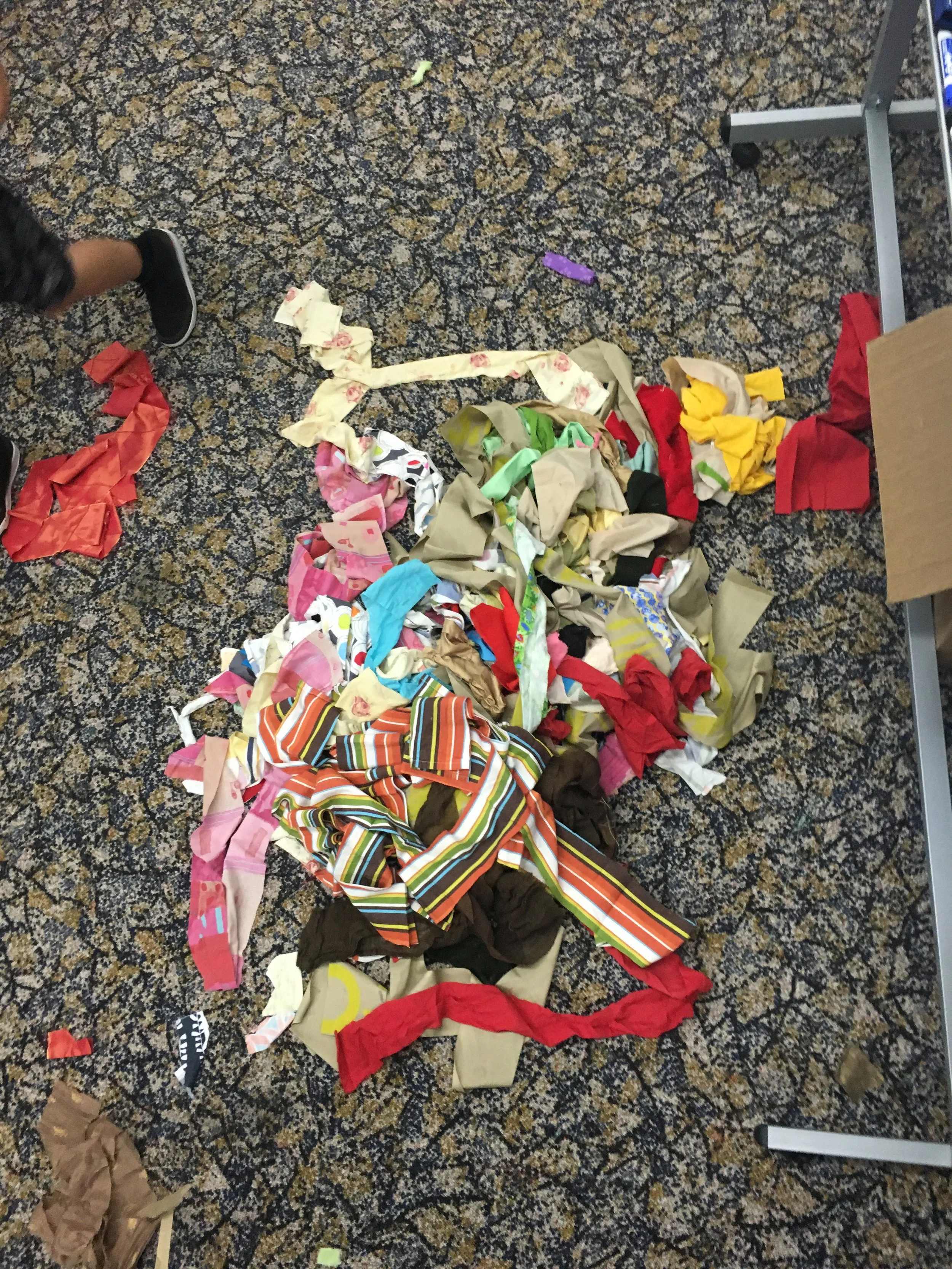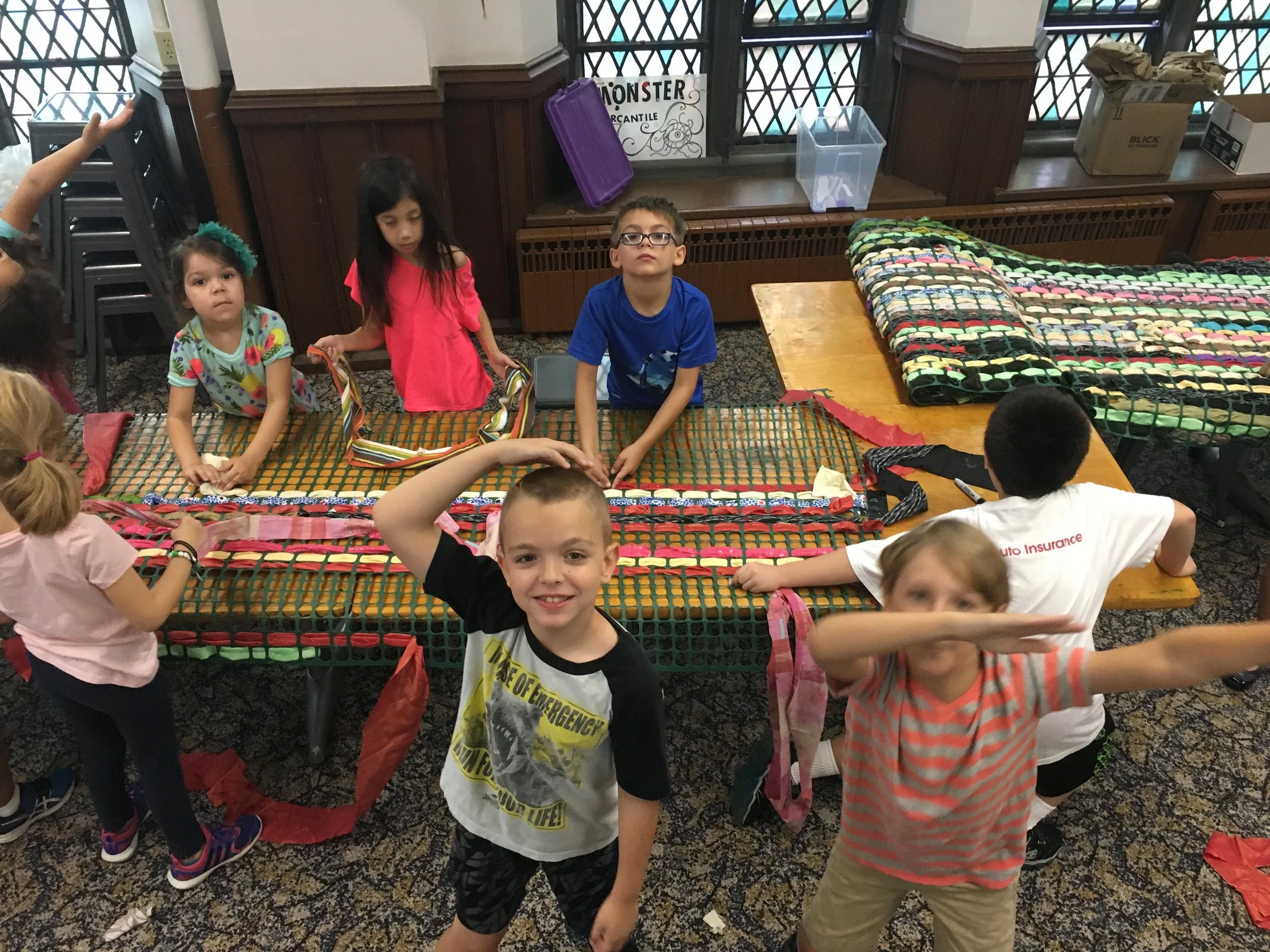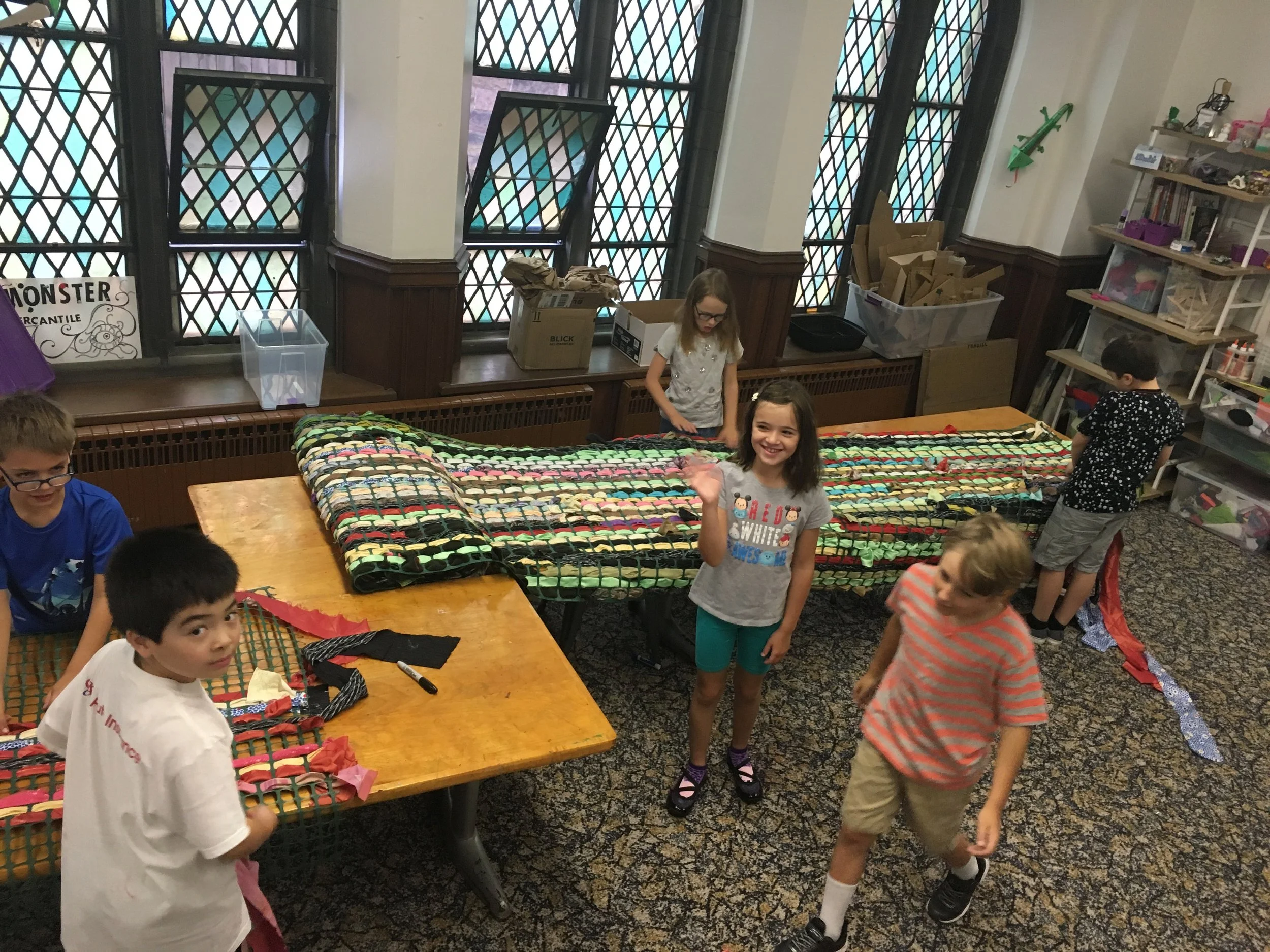 At the beginning of the year, all Kentucky Avenue students collaborated on a giant weaving made out of donated recycled materials: plastic fencing and fabric. The results were amazing!